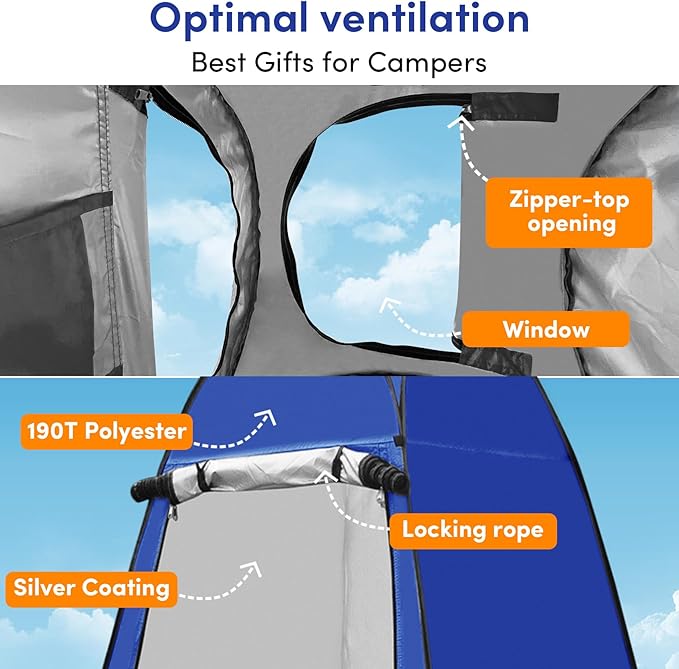 • PRIVACY & HIGH-QUALITY: This pop up privacy tent is made of 190T silver-coated and water-repellent thickened Oxford cloth, it can keep the camp tent dry and block 80% of harmful UV rays, perfect for all sorts of outdoor situations. The interior of this pop up privacy tent is coated with a silver layer, ensuring privacy without transparency. This is absolutely an excellent addition to your camping gear. With dimensions of 47*47*75inch when unfolded, this tent offers ample space for privacy