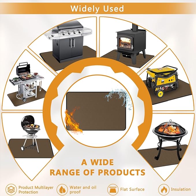 • WIDE APPLICATION: This grill mat offers versatility. It can be used on any type of grill, including gas, charcoal, electric, and more. suitable for a variety of scenes, outdoor camping fire prevention, home fire prevention, fireplaces, fire pits