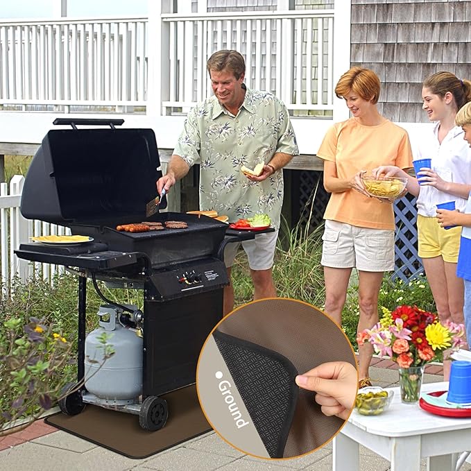 Anze Under Grill Mat for Outdoor Grill, 24x42 Inch Anti-Slip BBQ Floor Mats, Easy to Clean Reusable Fireproof Grill Pad, Oil-Proof Waterproof Protector for Indoor Fireplace Pit Mat Brown