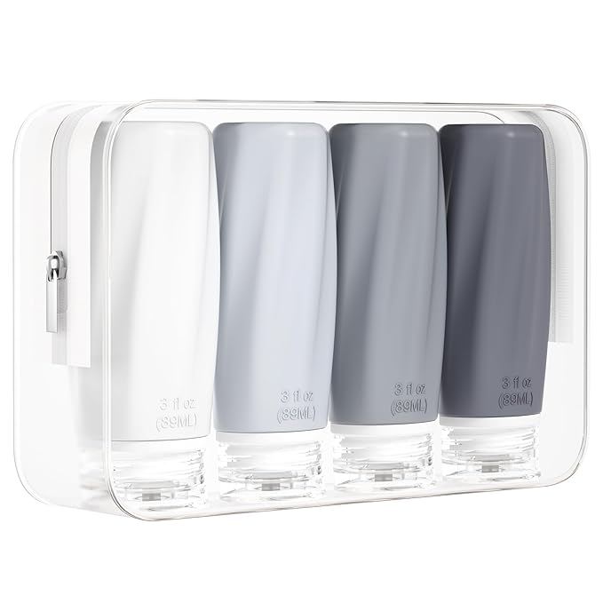 Morfone Travel Bottles for Toiletries, 3oz Tsa Approved Travel Size Containers Leak Proof Squeezable Travel Accessories Refillable for Shampoo Conditioner Lotion Liquids(White Grey)