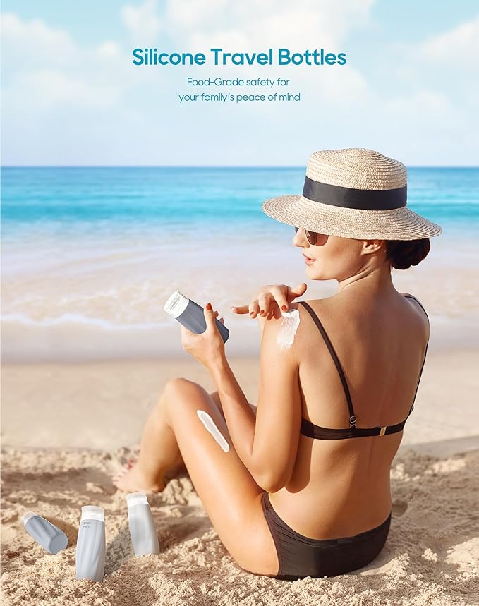• 【Safe Silicone & Squeezable Material】 Our silicone travel bottles are made of food-grade silicone that making it safe for other liquids like sauce, salad dressing or even baby food. Moreover, these travel shampoo bottles are soft to use, flexible to carry around. It can make you squeeze out contents easily.