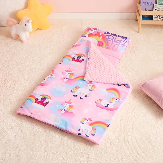 • Cute and lovely style: Our nap mats for toddlers features fun and unique designs - dinosaurs, unicorns, and construction scenes. The playful and bright designs of the sleeping mat add an extra layer of fun to children's rest time, while also inspiring creativity and making time more exciting.