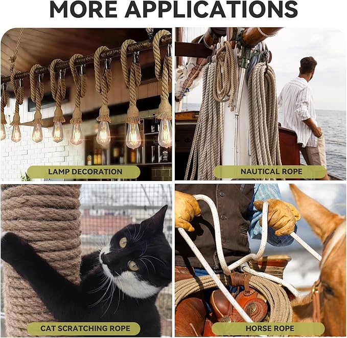 • 【Perfect for Heavy-Duty Tasks】From landscaping and gardening to industrial and nautical applications, this 50-foot rope is ideal for any heavy-duty task. It can be used to tie down large items, create rustic décor, or even for tough activities like tug of war. Its high tensile strength ensures it can handle the toughest applications and remains reliable over time.
