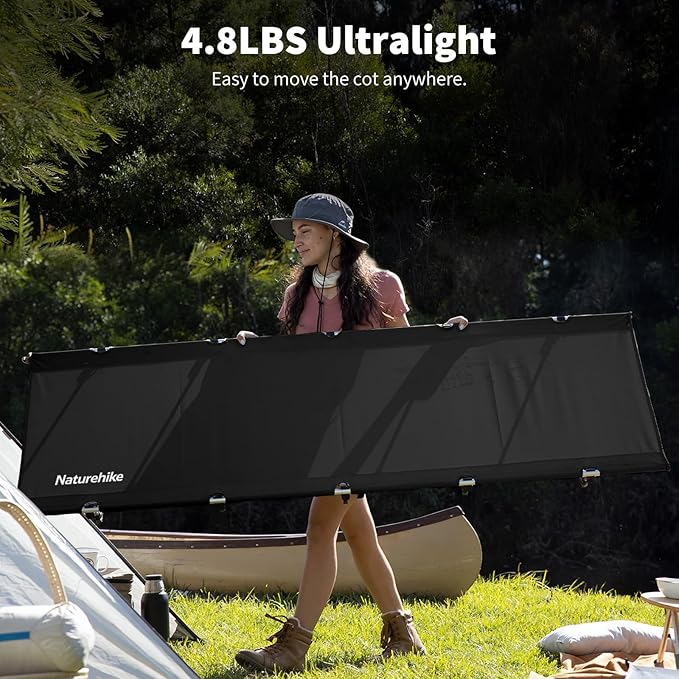 Naturehike Ultralight Camping Cot, Easy to Assemble Folding Tent Cot, Compact & Protable Camping Bed for Camping, Mountaineering, & Hiking, Supports 330lbs with Carry Bag, GreenWild Dark Black