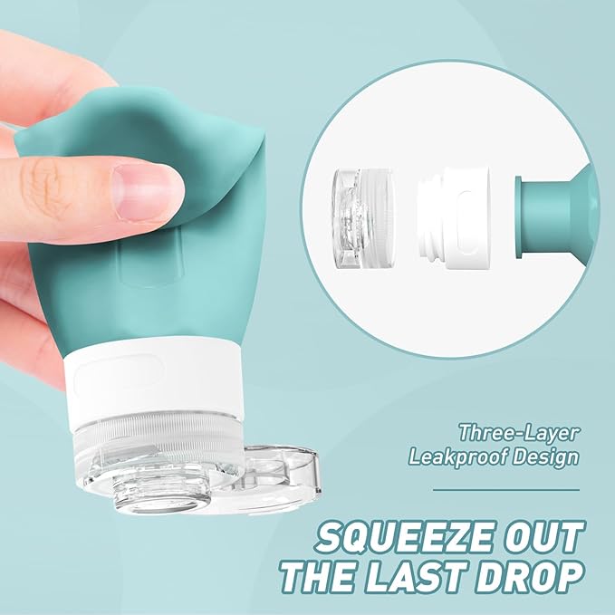 • TSA Approval: 4 pack 3 oz travel bottles for toiletries tsa approved is a TSA approved capacity that allows for unobstructed boarding. These travel size containers for toiletries are lightweight and portable, making checking in your baggage smooth and hassle-free. Additionally, our silicone travel containers for toiletries leak proof come with a zippered clear tsa approved toiletry bag with bottles to save space, easy storage, and transportation