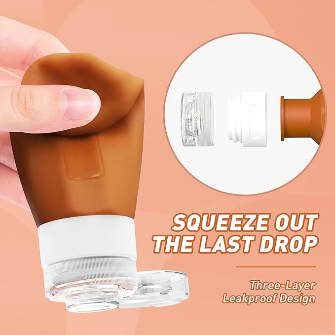 • TSA Approval: 4 pack 3 oz travel bottles for toiletries tsa approved is a TSA approved capacity that allows for unobstructed boarding. These travel size containers for toiletries are lightweight and portable, making checking in your baggage smooth and hassle-free. Additionally, our silicone travel containers for toiletries leak proof come with a zippered clear tsa approved toiletry bag with bottles to save space, easy storage, and transportation