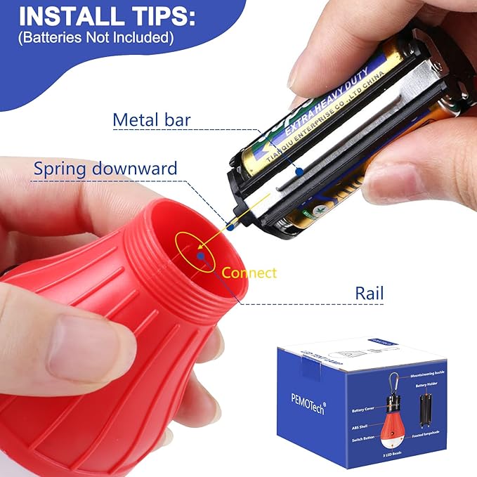 • 🌟【4 Lighting Modes & 4 Pack Camping Lantern Lights】PEMOTech camping lanterns have 4 modes: full light/half light/flashing/SOS flashing. You can press the round button to select your favorite mode according to different types of activities. Each camping lantern is tested individually, so you can make sure it is in good working condition. If there are any problems during use, please feel free to contact us.