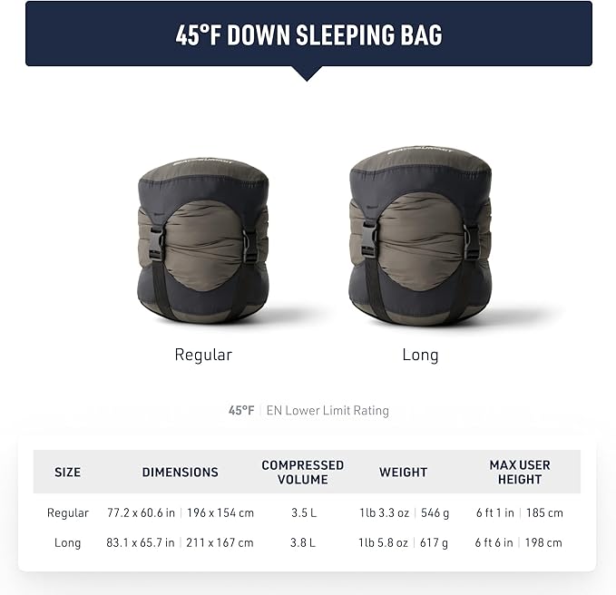 • 45-degree Fahrenheit (7-degree Celsius) versatile, lightweight down sleeping blanket for warm weather bike touring, hut trips, and travel