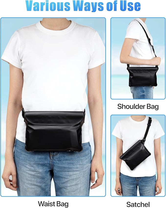 • Hands-free for Water Sports - The waterproof bag with waist strap works as a waterproof waist pouch carrying your valuables and frees up your hands, so you can fully enjoy surfing, kayaking, paddle boarding, raft, fishing, water parks or other water sports.