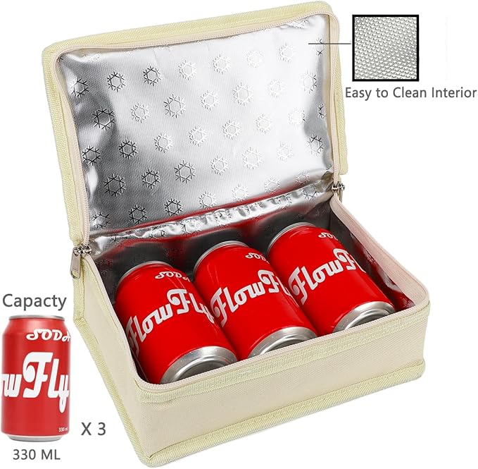 FlowFly Small Insulated Lunch box Portable Soft Bag Mini Cooler Thermal Meal Tote Kit with Handle for Work & School, Beige
