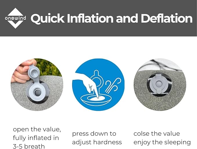 • RAPID INFLATION: Equipped with a convenient one-click valve, inflating your pillow to maximum firmness is quick and hassle-free, requiring just 3-5 breaths. Adjust the firmness to your liking with a simple hold on the inflation button, ensuring customizable comfort wherever your camping, backpacking, hiking, or hammock adventures take you.
