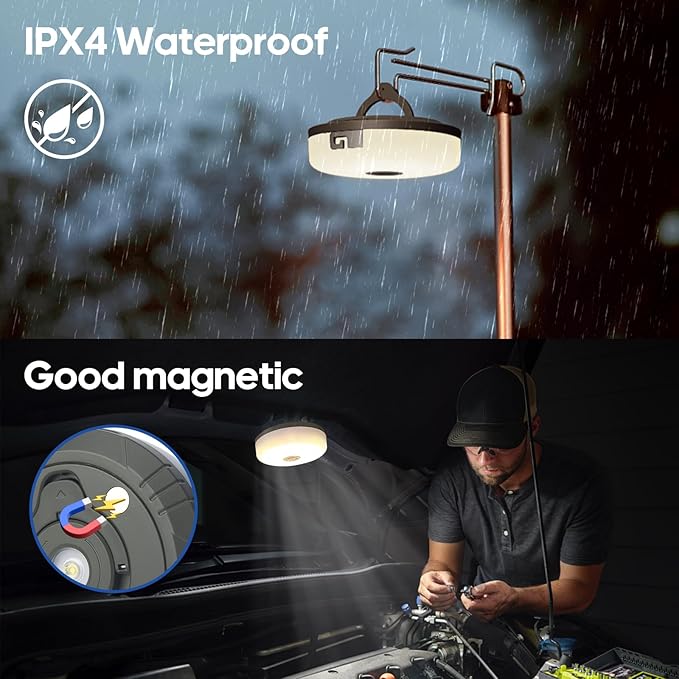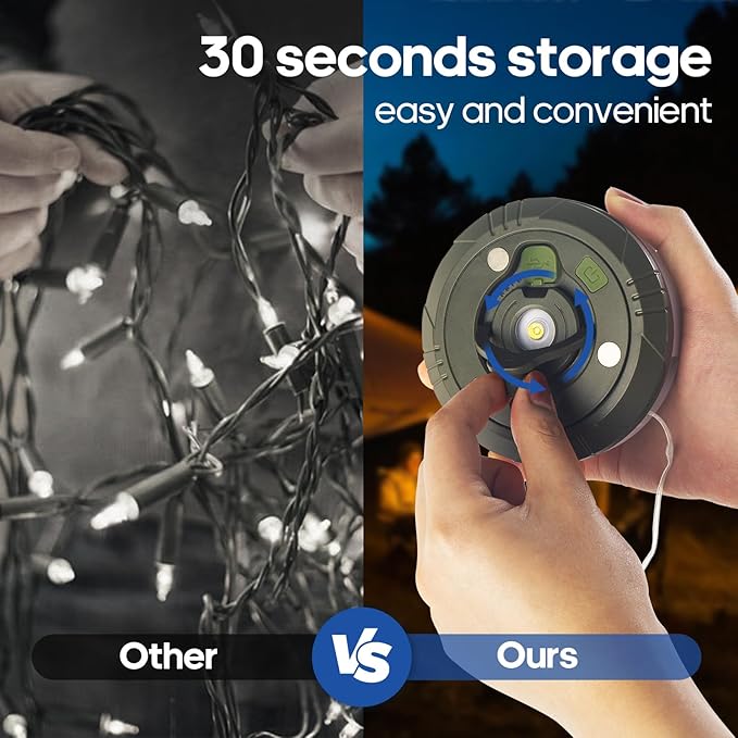 • 【Portable & Versatile】only 7.5 ounces, it's very convenient for field trips. Equipped with foldable hooks and magnetic attraction device, you can hang it on tents, tree branches, or carry it. Our camping outdoor string lights are not only suitable for camping, hiking, fishing, but also can be used for home decoration, hanging in the bedroom, backyard, garden, RV, awning and so on. It can also be used to set a festive mood and decorate for parties, ideal for men and women of all ages.