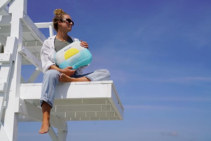 Ballast Beach Pillow – Comfy, Durable & Compact, Stays Put on Windy Beaches with Patented Sand Pouch, Inflatable Pillow for Beaches, Pools, Camping, Festivals and Travel (Golden Sunrise)