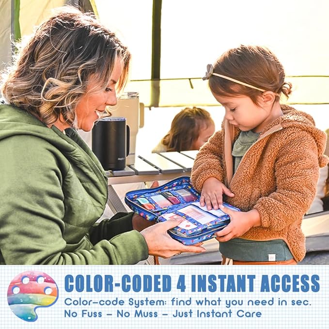 • 🌈 Travel-Friendly Organization: Our first aid kit is meticulously designed to ensure quick access during travel emergencies. Our supplies are neatly organized in designated compartments, all in one compact and portable storage bag, allowing for quick grabs during emergencies, making it perfect for parents on the go!