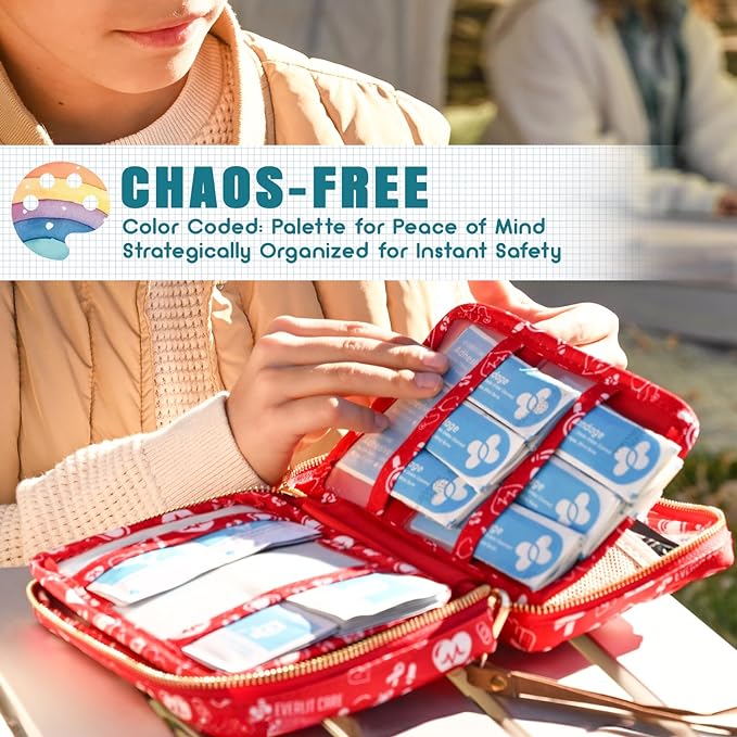 • 🌈 Travel-Friendly Organization: Our first aid kit is meticulously designed to ensure quick access during travel emergencies. Our supplies are neatly organized in designated compartments, all in one compact and portable storage bag, allowing for quick grabs during emergencies, making it perfect for parents on the go!
