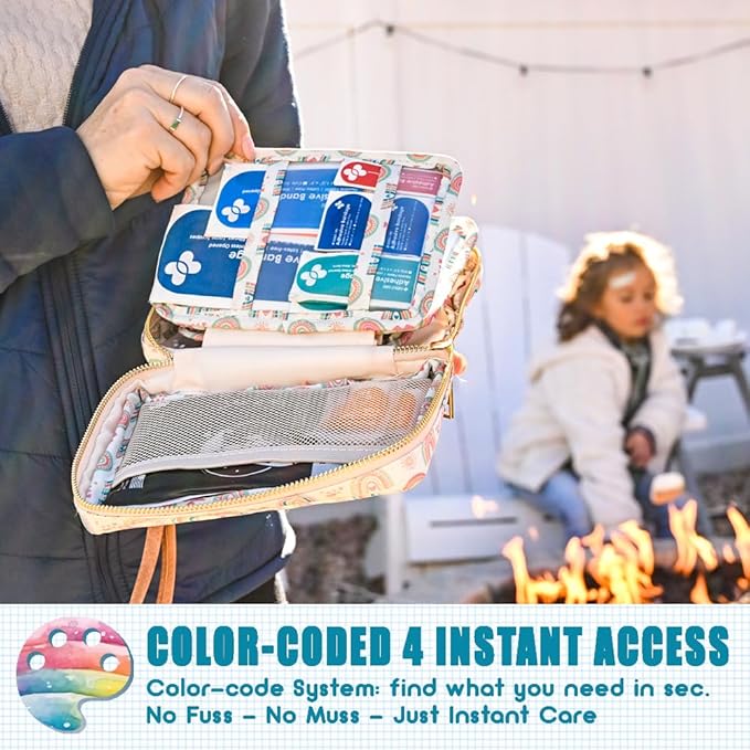 • 🌈 Travel-Friendly Organization: Our first aid kit is meticulously designed to ensure quick access during travel emergencies. Our supplies are neatly organized in designated compartments, all in one compact and portable storage bag, allowing for quick grabs during emergencies, making it perfect for parents on the go!