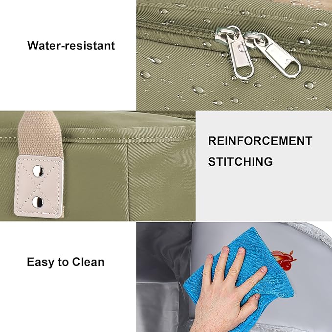 • 【WELL MADE AND DURABLE】This is a very well designed, beautifully manufactured, and super attractive lunch bag. It is constructed well with good stitching and materials. The exterior has lightweight water resistant fabric and is easy to clean, and the interior is high quality insulation, and built-in thick PE foam to keep your food and drinks warm/cool for hours, and keep cold longer when using an ice pack.
