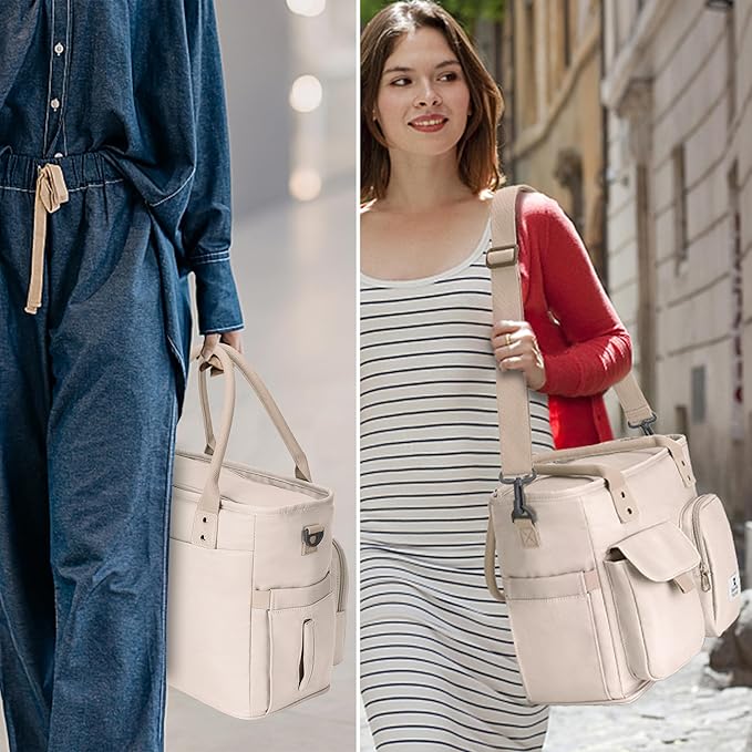 Hafmall Insulated Lunch Bag for Adults,Big lunch box for men, Wide Opening Insulated Bag with Shoulder Strap, Reusable Adult Lunch Bag For Work, Picnic(Beige)