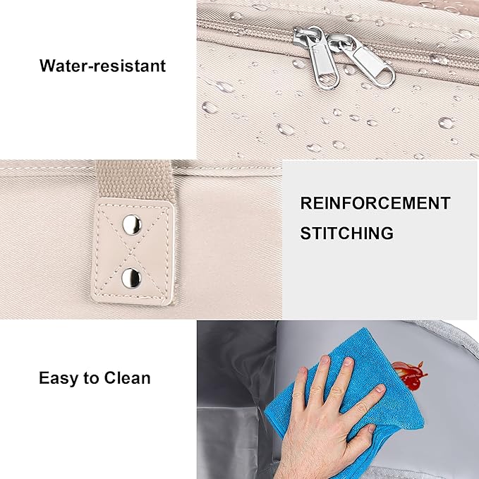 • 【WELL MADE AND DURABLE】This is a very well designed, beautifully manufactured, and super attractive lunch bag. It is constructed well with good stitching and materials. The exterior has lightweight water resistant fabric and is easy to clean, and the interior is high quality insulation, and built-in thick PE foam to keep your food and drinks warm/cool for hours, and keep cold longer when using an ice pack.
