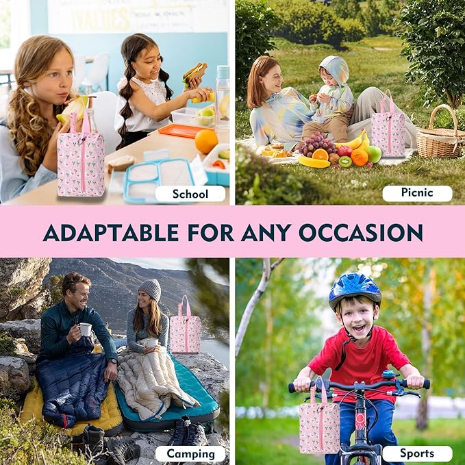 • 2. Keep Food Fresh - Reduce waste by using our reusable snack bag,Enjoy fresh, delicious food with this insulated snack bag that keeps food cold or warm for hours.