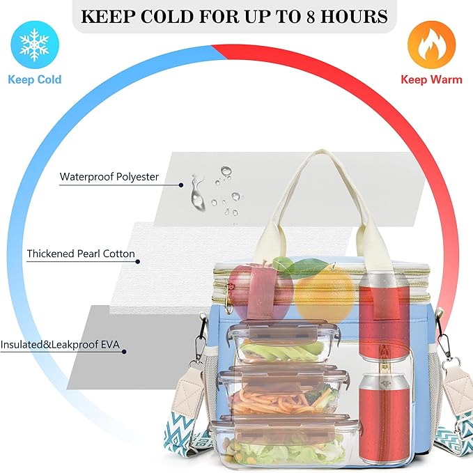 LOKASS Lunch Box for Women/Men-16L-Insulated Lunch Bag, Expandable Double-layer Leakproof Cooler Bag with Upgrade Adjustable Shoulder Strap Ideal for Work/Travel/Picnics(Sky Blue)