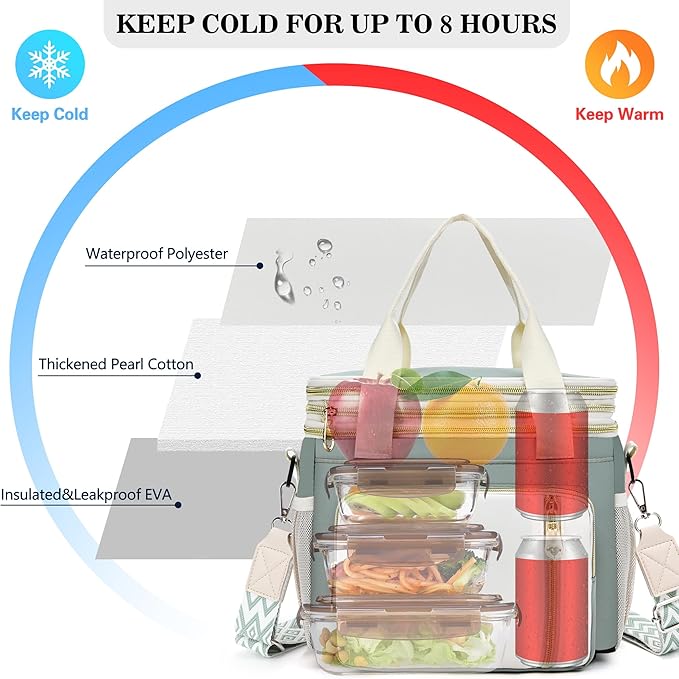 • Convenient and Comfortable to Carry: With upgrade fashionable woven canvas shoulder strap and a comfortable handle for versatile carrying options. Ideal for work, picnics, hicking, beach outings, and office lunches.