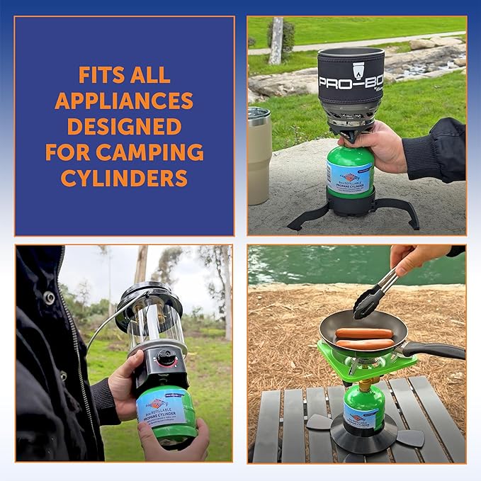 • SAVE MONEY, REDUCE WASTE: Stop wasting money on disposable tanks and start saving money with our reusable, safely, and easily refillable propane cylinders; Keep disposable propane tanks out of the environment by using the Flame King 1/2Lb refillable cylinders