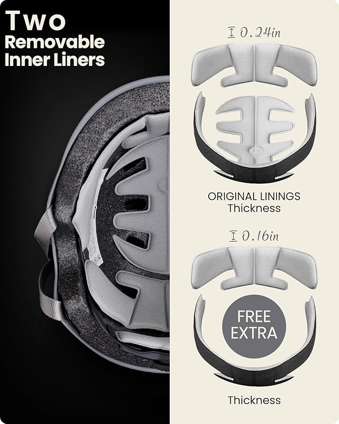 • Extra Removable Lining: Skateboard helmet with two removable liner for different head sizes and easy to wash the sweat away