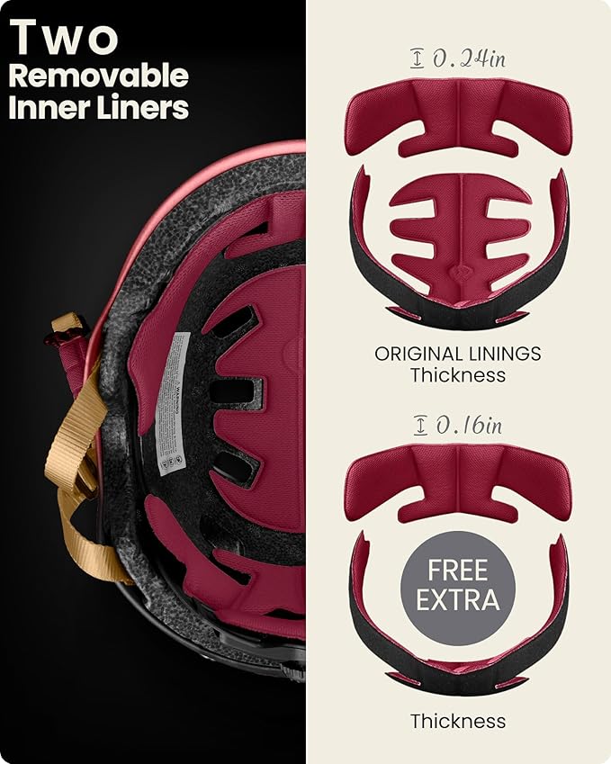 • Extra Removable Lining: Skateboard helmet with two removable liner for different head sizes and easy to wash the sweat away