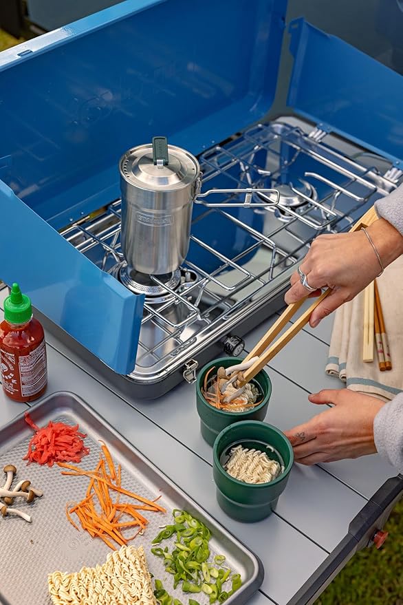 • DURABLE CONSTRUCTION: Built tough for a camp cooking set, these camping must-haves cookset accessories feature 18/8 stainless steel that resists dents and breaks. The double-wall insulated cups keep drinks hot, while the exterior stays cool to touch.