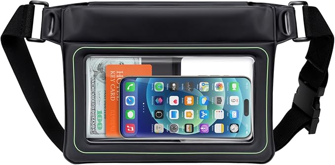 • oat and Easy Access: Never lose your phone in the water again with our floating waterproof fanny pack; Built-in sponge air cushion provides 35 oz (1000 g) of buoyancy to keep essentials afloat; Perfect for kayaking, pool parties, or beach days when you need quick access to your phone; No more diving to retrieve sunk valuables; Stay hands-free while keeping your gear secure