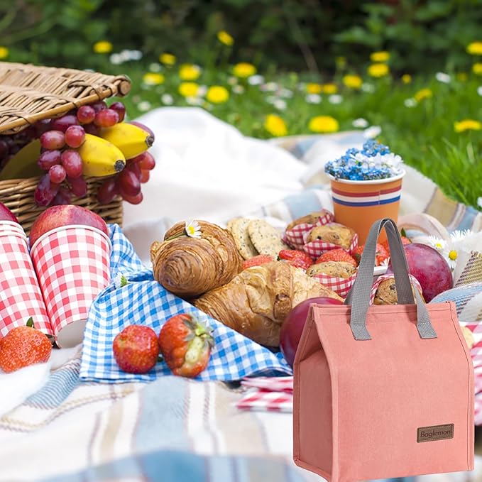 Lunch bag, Insulated Lunch Bag for Women Men, Lunch Containers Reusable Lunch Tote Bags for Work, Travel, Outdoor (Pink)