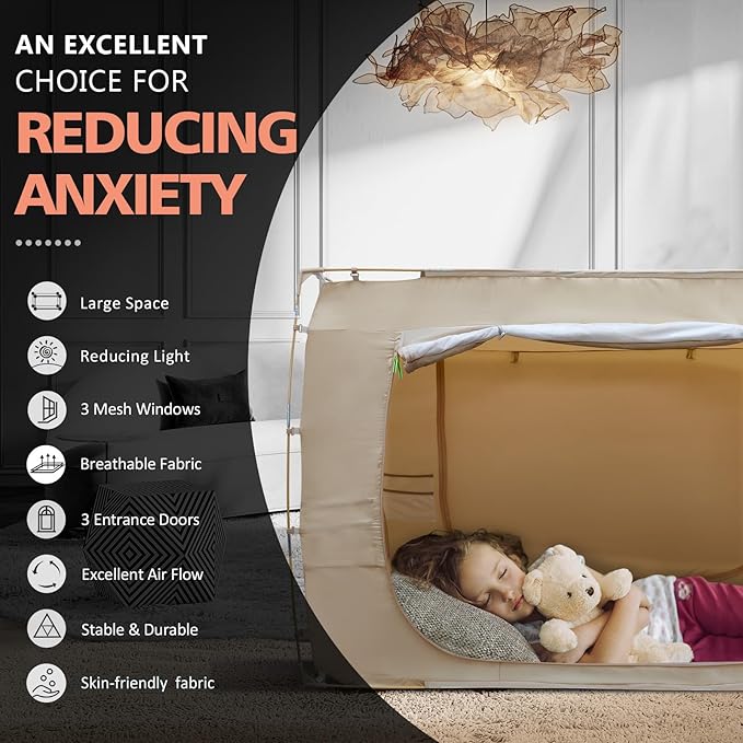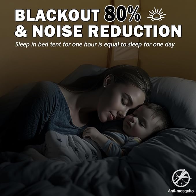 • Original design - We pioneered this rectangular large space bed tent, designed to improve sleep quality and create secrecy. Sleeping for 1 hour is equivalent to sleeping for 1 day. We have helped many people meet their needs. Let our bed tent start your wonderful sleep journey