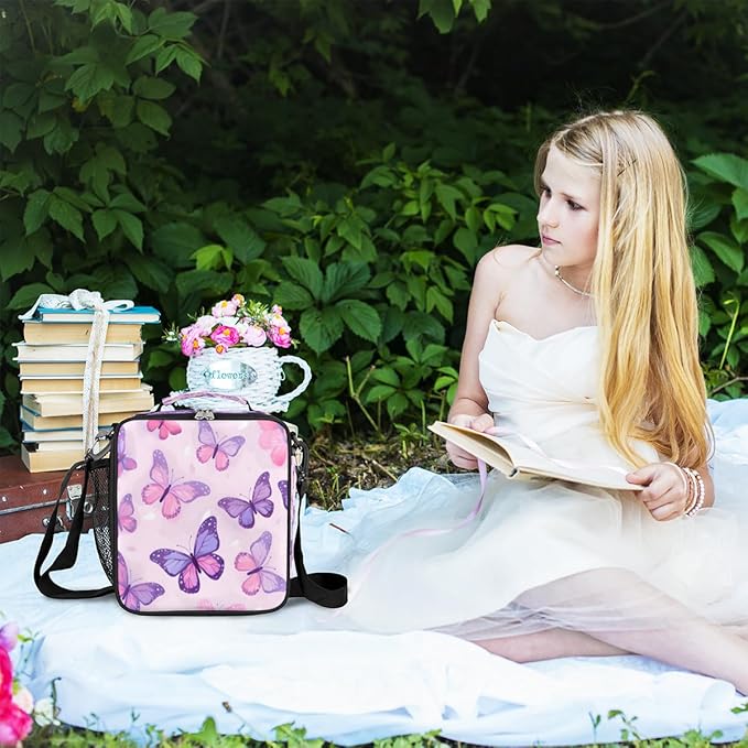 Pardick Butterfly Kids Lunch Bag Purple Insulated Lunch Box Mini Cooler Back to School Thermal Meal Tote Kit Bento Tote Bags Thermal Lunchbox for Boys Girls