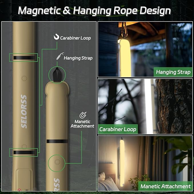 • 【Multiple choices of scenarios】With magnetic base and elastic strap on the back of the lamp, it adds more functions for outdoor activities, you can fix it or hang it in any scene you need, meet all kinds of lighting needs such as camping, hiking, fishing, hiking, beach, party and so on, become your reliable lighting partner.