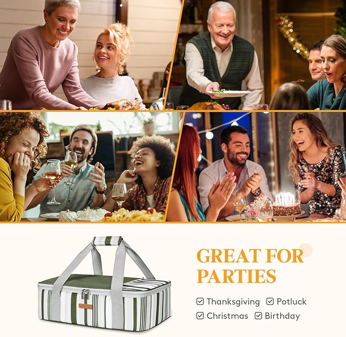 Insulated Casserole Carrier for Hot or Cold Food, Lasagna Lugger Tote for Potluck Parties/Picnic/Cookouts, Fits 9"×13" Baking Dish, Dark Green
