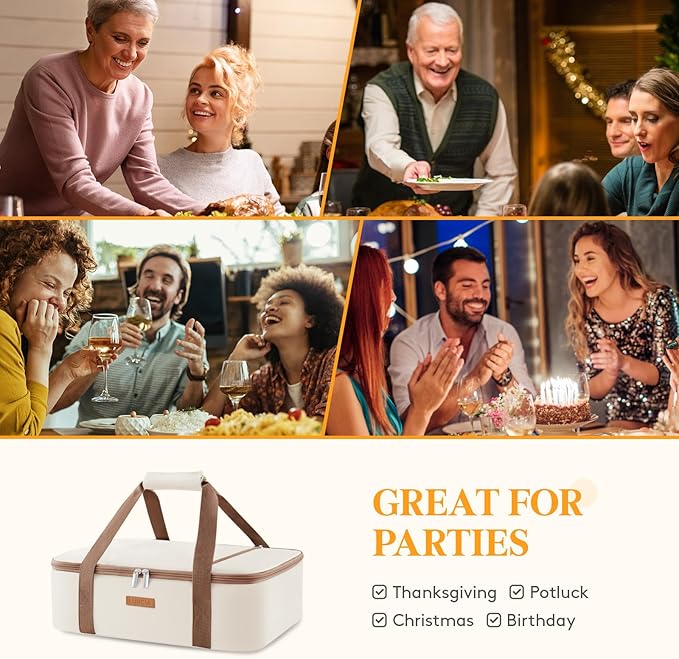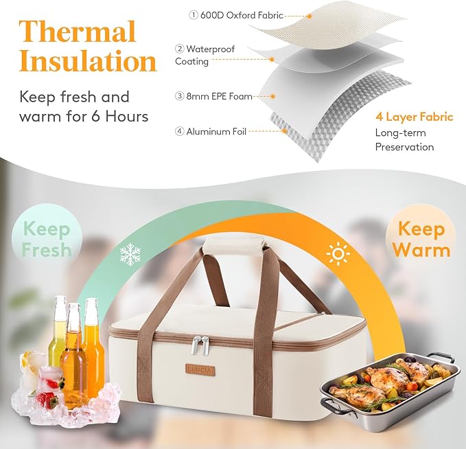 Insulated Casserole Carrier for Hot or Cold Food, Lasagna Lugger Tote for Potluck Parties/Picnic/Cookouts, Fits 9"×13" Baking Dish, Cream