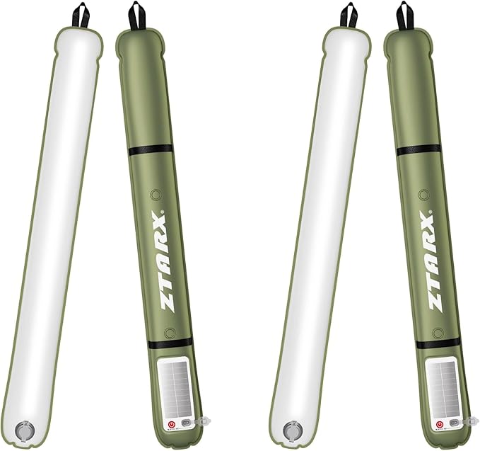 Solar/Type-C Rechargeable Camping Light Bar, IP66 Waterproof LED Tube, TPU Ultralight Electric Light, 2000mAh Foldable Inflatable Outdoor Tent Light for Camping, Hiking, Traveling, Party (Green 2 PCS)