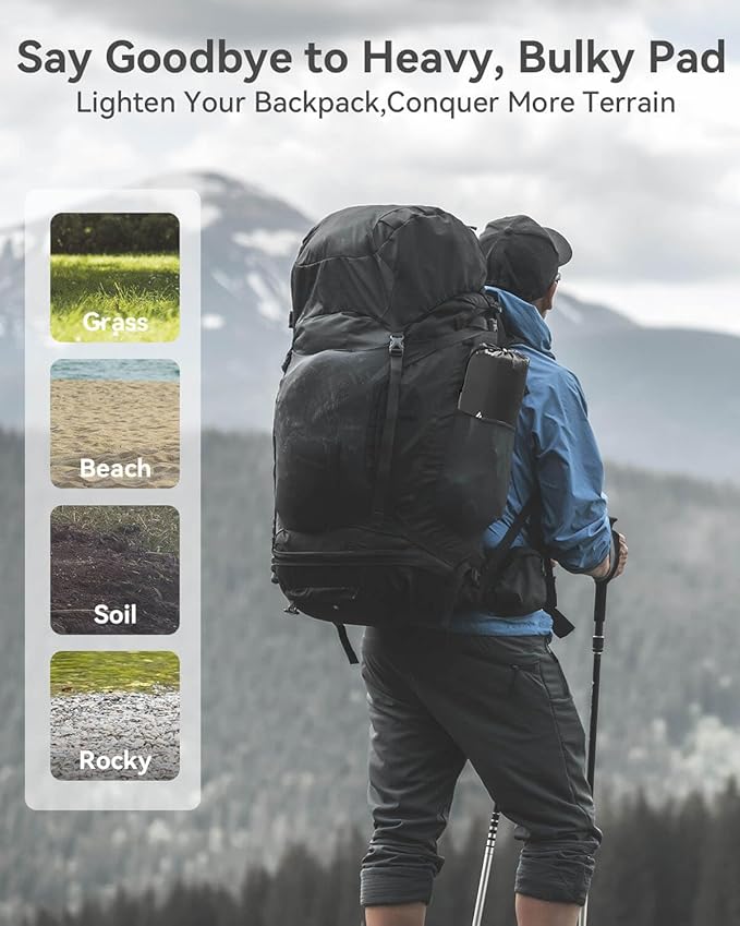 • Built to Last, Crafted for Comfort: Constructed from polyester pongee with TPU lamination technology, this camping mattress pad is waterproof, compact, durable, and resistant to wear and tear. It's perfect for family camping, hiking, backpacking, van camping, and can also serve as a comfortable air bed for guests at home.