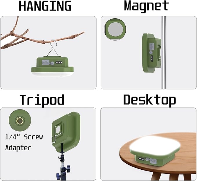 • Magnet Base & Multifunction Hook: this rechargeable lantern built-in N54 magnet patch which has strong enough magnetic adsorption on any metal surface. this camping light can aslo be a desktop lamp with our special design standable hook.
