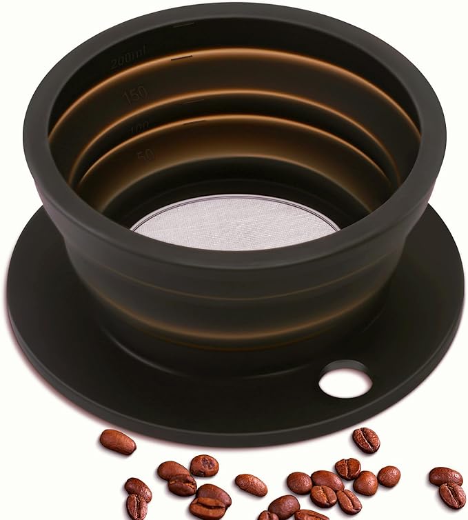 • [Paperless and Reusable]: The collapsible travel pour over coffee dripper is specifically designed to reuse with fine stainless steel mesh screen, eliminating the need for filter paper, saving money and reducing unnecessary waste. Now say goodbye to the hassle of using filter paper and enjoy the authentic taste of coffee.
