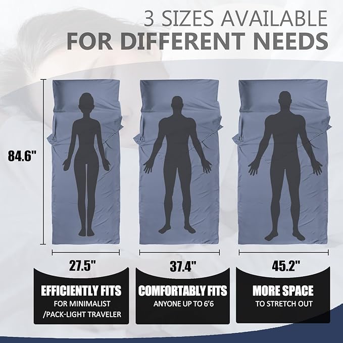• Home-Feeling Travel Sheet: Get ready for the ultimate in comfort on your next adventure! Our luxurious Travel sheet will make you feel like you're back home, no matter where you are. They're breathable and super silky soft, so you can relax and enjoy the ride. And the integrated pillow sleeve offers additional comfort and protection, so you can sleep like a baby!