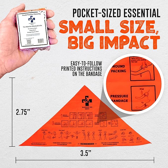 • ALL-IN-ONE TRIANGLE BANDAGE FOR MULTIPLE USES: This versatile first aid triangle bandage is designed for youth but suitable for all ages. It serves as a tourniquet, sling, cravat, or splint, making it essential for any first aid kit. Ideal for emergencies, it quickly adapts to manage injuries like sprains, cuts, or breaks, providing reliable support in a variety of situations