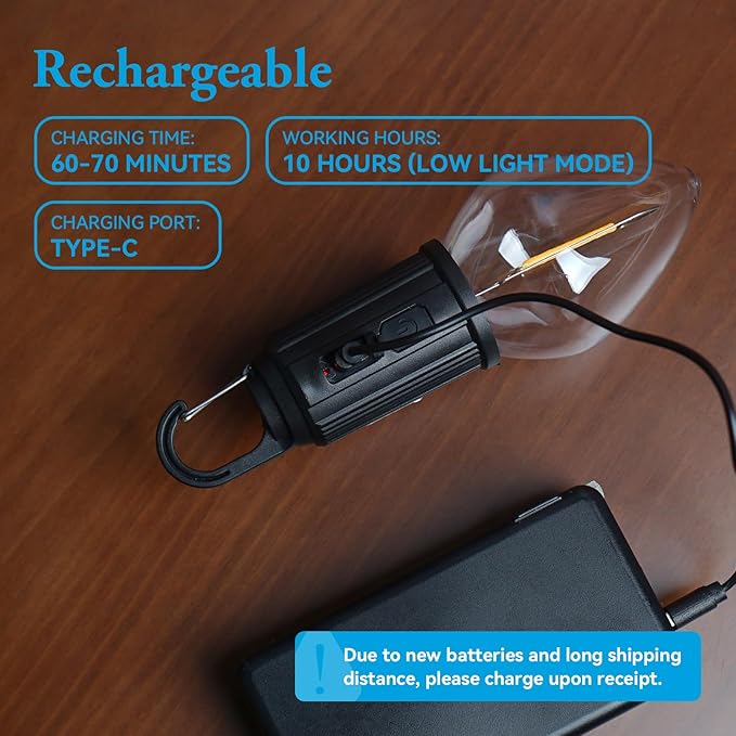 • Fast Charging and Long Battery Life:Enjoy extended illumination with our long-lasting outdoor lamps. These rechargeable battery-operated lanterns it only takes 60-70 minutes to fully charge using a type c charging cable. High brightness lasts 8 hours and low 10 hours. Perfect for outdoor settings, these battery-powered lights are versatile and practical. Whether used as gazebo lights outdoor waterproof or as a battery-operated pendant light for your backyard, they offer consistent performance and convenience.