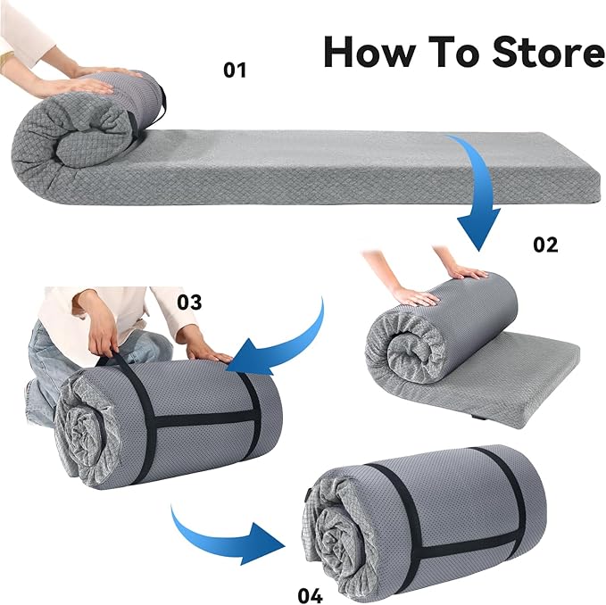 HOMBYS Memory Foam Camping Mattress Pad,Portable Sleeping Pad for Adult,Waterproof Cot Mattress,Roll Up Floor Mattress,Foldable Backpacking Travel Bed for Hiking,Guest Bed
