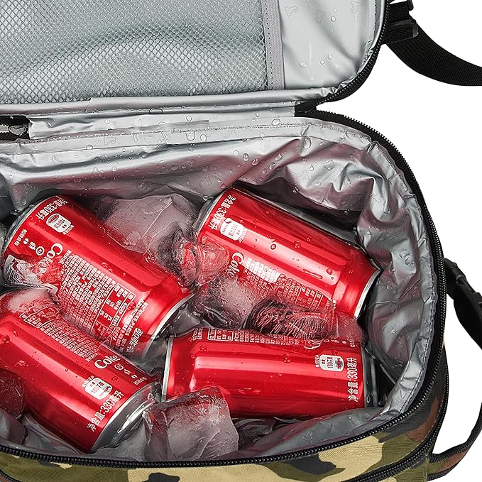 Tirrinia Expandable Insulated Lunch Bag, Leakproof Flat Lunch Cooler Tote with Shoulder Strap for Men and Women, Suitable for Work & Office, Camo