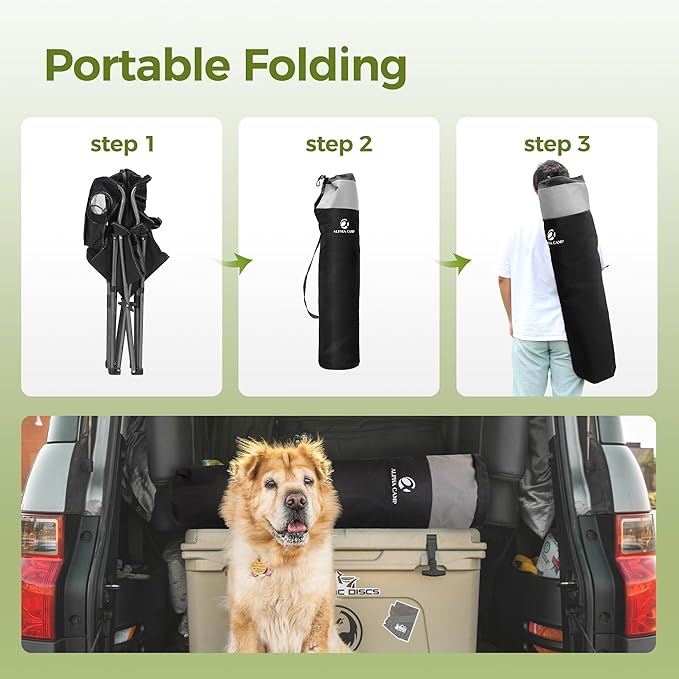 • ❤ 【Portable And Easy Storage】Folding camping chair is easy to set up and fold in seconds. It collapses down to just 9.05″ x 38.58″ and Weights only 13.2 lbs that can be stored almost anywhere