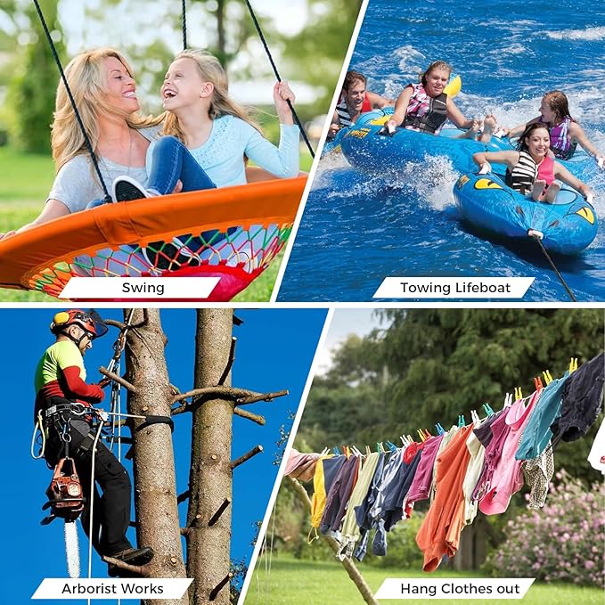 • Versatile: Strong braided rope which is lightweight and multi-purpose, will be convenient to carry and use. It will be suitable for lifting, tree artist rigging, ship anchor, car traction, sailing, swing, etc.