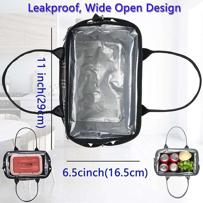 • ✿ Wide-Open Design & Large Size: Our women bag can be opened up to 11"L x 6.5"W by dual zipper closure, you can put into or take out of your lunch or other kinds of stuff horizontally, avoid spilling soup or liquid in the bag. The dimension is:11” L×6.5” W×11” H,it could give roomy storage space you need to hold your favorite meals, delis, and lunch treat. You could fill the compartments or pockets with lunch boxes, food containers, condiments, fruit salad bowls and other essentials.