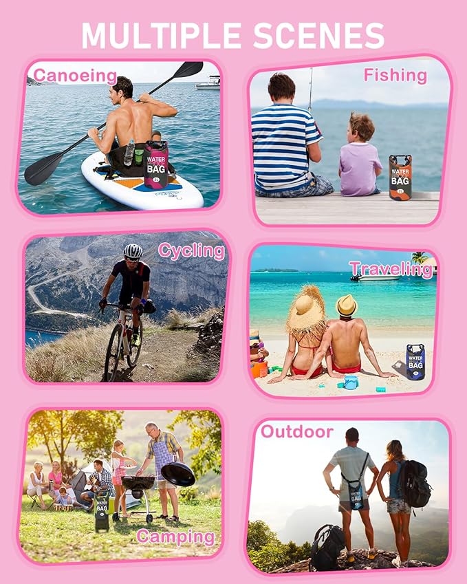 • Great Matching for Versatile Use: The 2L roll top backpack sack is very useful for water activities, including swimming, kayaking, beach trips, rafting, boating, hiking, camping, and fishing. Perfect for both wet and dry storage needs.